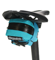 The Plan B Micron is a scaled down version of the Plan B. This discreet unit mounts under the saddle and around the rails using a 25mm strap with a clever magnetic hook to secure it. The PU coated zip and 1000D nylon construction makes the Plan B Micron water resistant, the 70D Ripstop liner backs this up. There are 2 HD elastic loops inside for stowing a multi tool and a CO2 canister leaving just enough room for a spare road tube and tyre levers. The Plan B Micron carries bare minimum spares, you could probably squeeze your front door key in there too.
