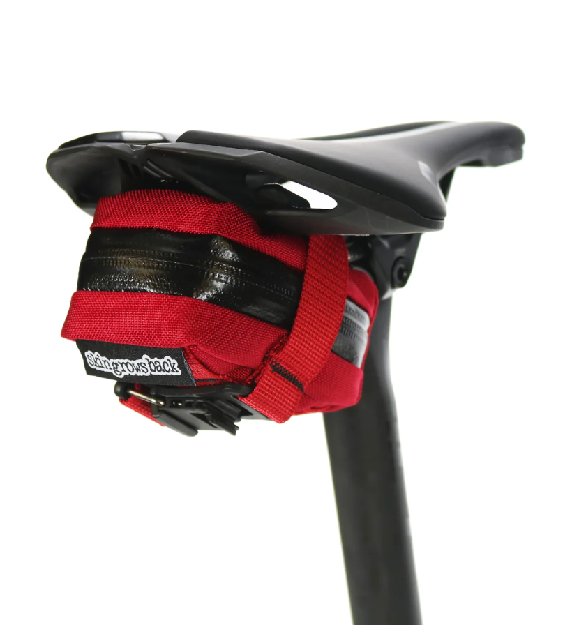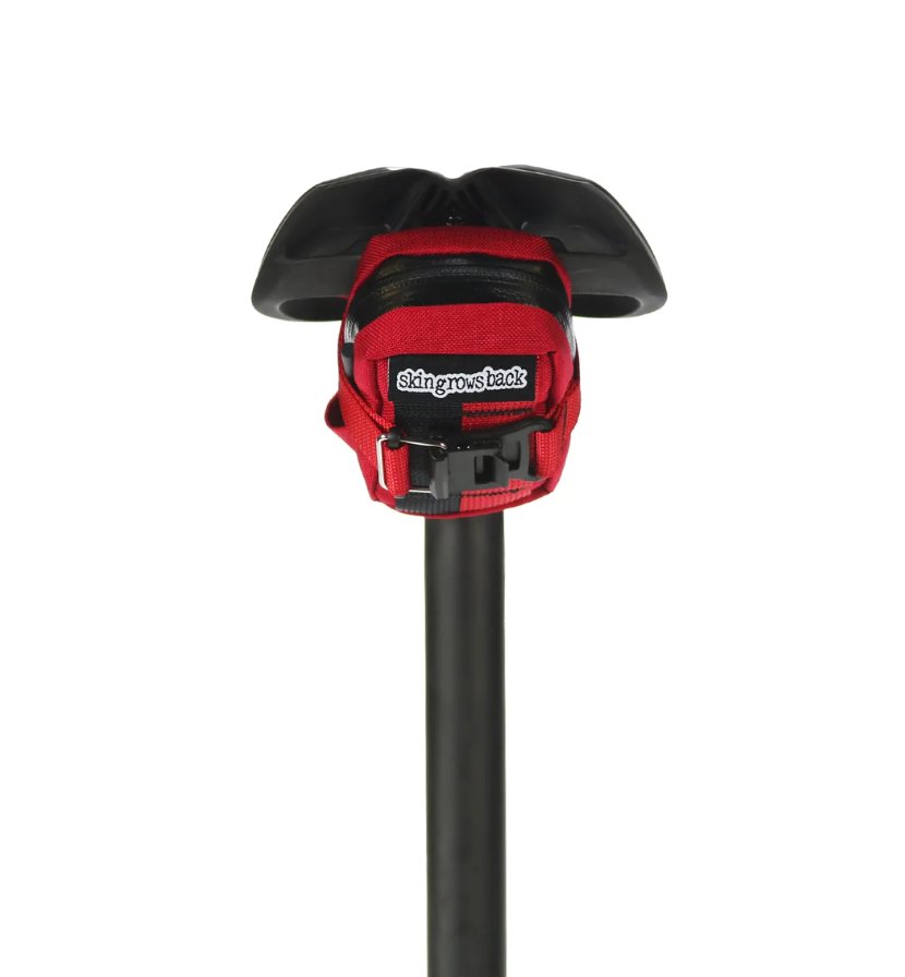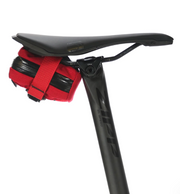 The Plan B Micron is a scaled down version of the Plan B. This discreet unit mounts under the saddle and around the rails using a 25mm strap with a clever magnetic hook to secure it. The PU coated zip and 1000D nylon construction makes the Plan B Micron water resistant, the 70D Ripstop liner backs this up. There are 2 HD elastic loops inside for stowing a multi tool and a CO2 canister leaving just enough room for a spare road tube and tyre levers. The Plan B Micron carries bare minimum spares, you could probably squeeze your front door key in there too.