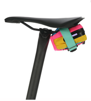 The Plan B Micron is a scaled down version of the Plan B. This discreet unit mounts under the saddle and around the rails using a 25mm strap with a clever magnetic hook to secure it. The PU coated zip and 1000D nylon construction makes the Plan B Micron water resistant, the 70D Ripstop liner backs this up. There are 2 HD elastic loops inside for stowing a multi tool and a CO2 canister leaving just enough room for a spare road tube and tyre levers. The Plan B Micron carries bare minimum spares, you could probably squeeze your front door key in there too.