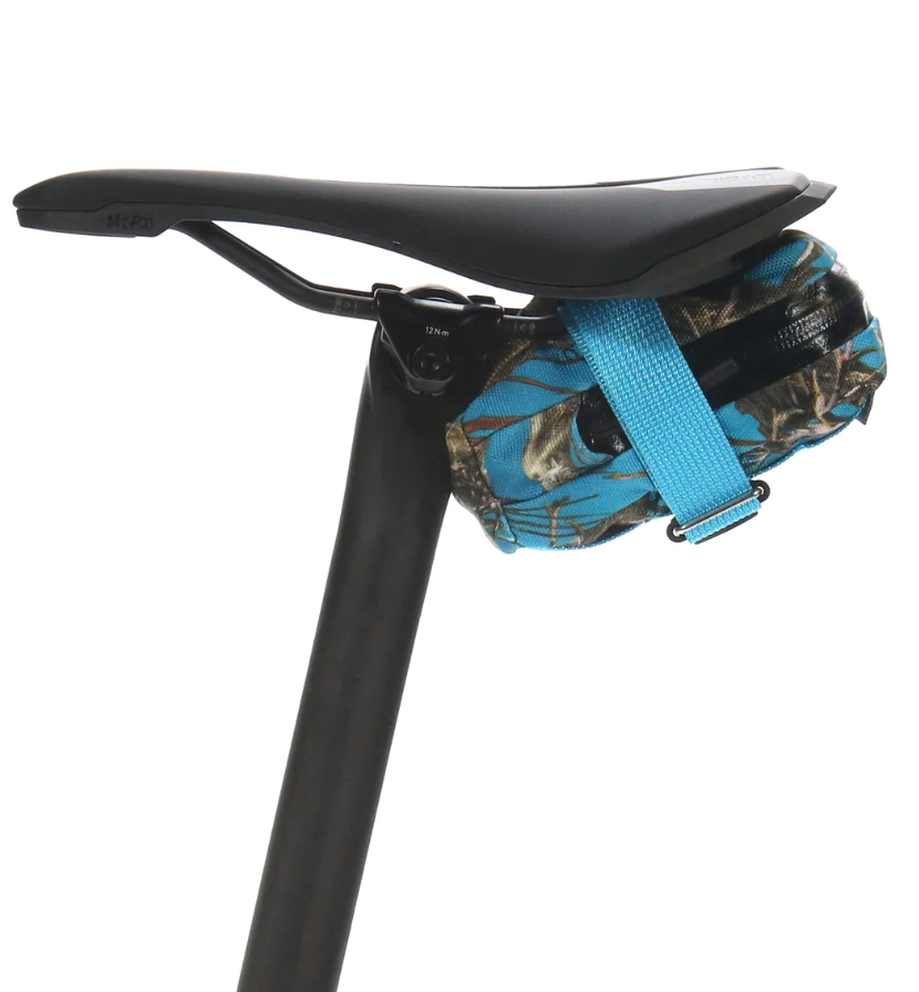 The Plan B Micron is a scaled down version of the Plan B. This discreet unit mounts under the saddle and around the rails using a 25mm strap with a clever magnetic hook to secure it. The PU coated zip and 1000D nylon construction makes the Plan B Micron water resistant, the 70D Ripstop liner backs this up. There are 2 HD elastic loops inside for stowing a multi tool and a CO2 canister leaving just enough room for a spare road tube and tyre levers. The Plan B Micron carries bare minimum spares, you could probably squeeze your front door key in there too.