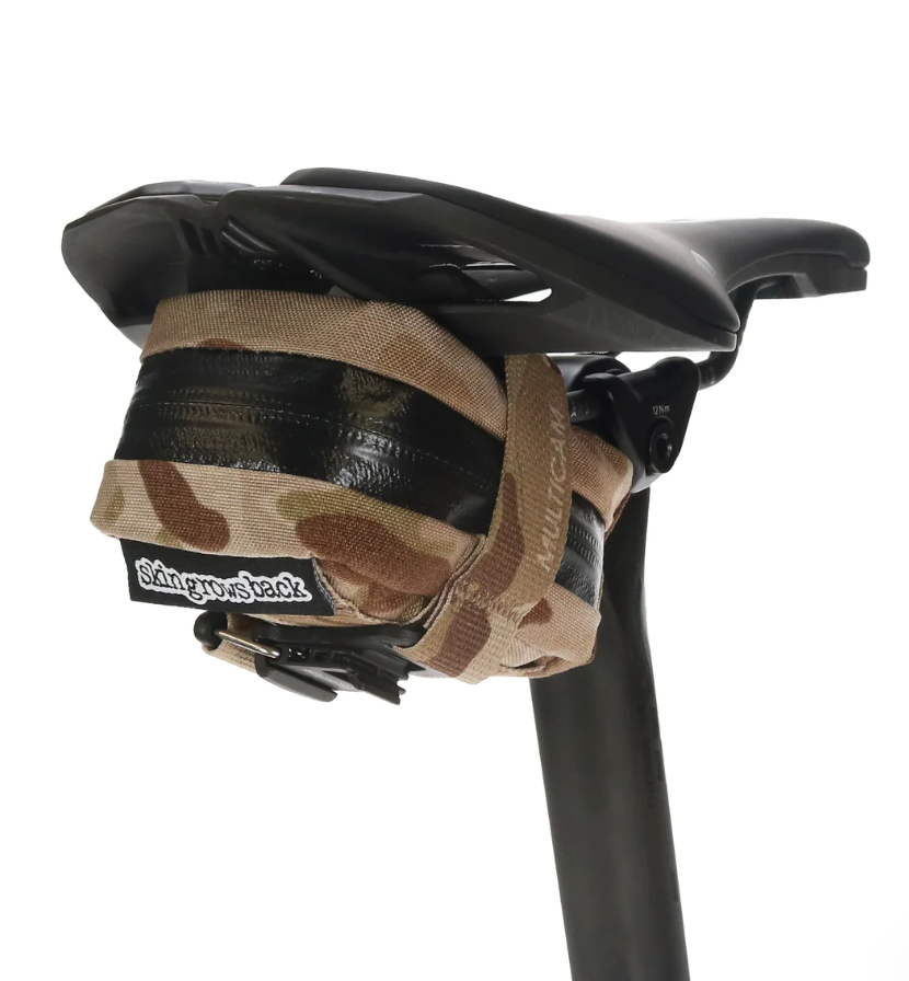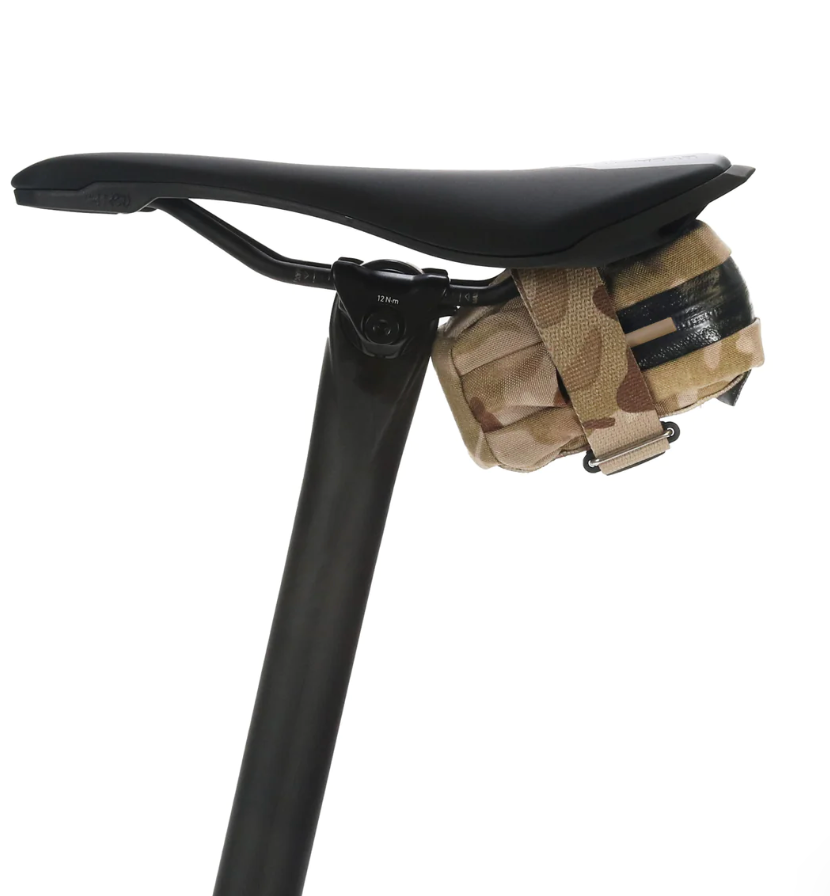 The Plan B Micron is a scaled down version of the Plan B. This discreet unit mounts under the saddle and around the rails using a 25mm strap with a clever magnetic hook to secure it. The PU coated zip and 1000D nylon construction makes the Plan B Micron water resistant, the 70D Ripstop liner backs this up. There are 2 HD elastic loops inside for stowing a multi tool and a CO2 canister leaving just enough room for a spare road tube and tyre levers. The Plan B Micron carries bare minimum spares, you could probably squeeze your front door key in there too.