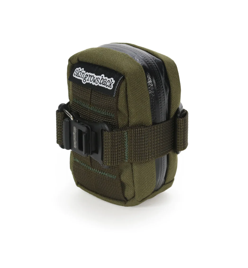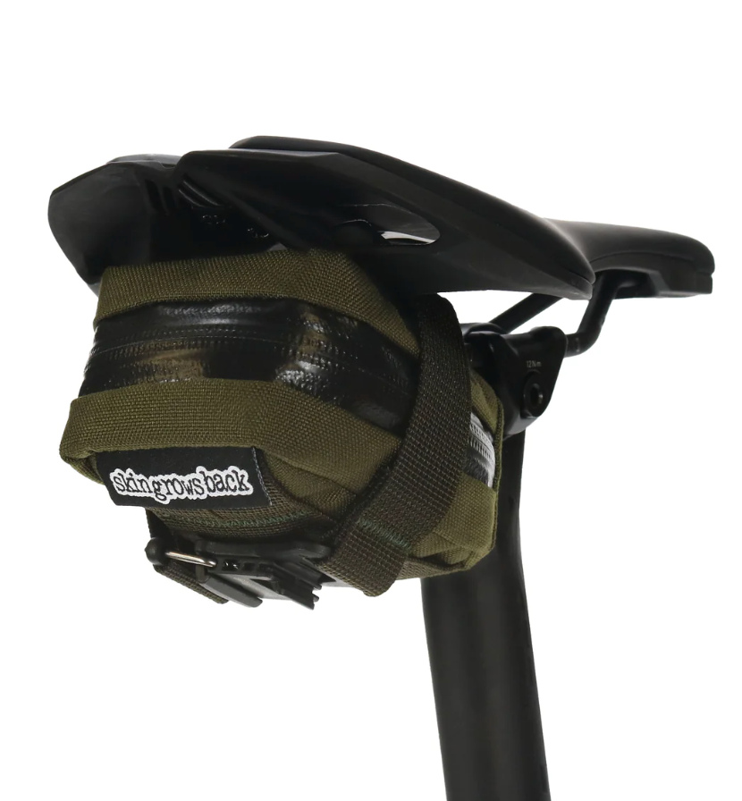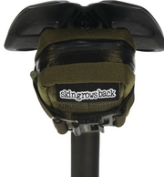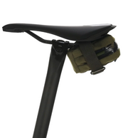 The Plan B Micron is a scaled down version of the Plan B. This discreet unit mounts under the saddle and around the rails using a 25mm strap with a clever magnetic hook to secure it. The PU coated zip and 1000D nylon construction makes the Plan B Micron water resistant, the 70D Ripstop liner backs this up. There are 2 HD elastic loops inside for stowing a multi tool and a CO2 canister leaving just enough room for a spare road tube and tyre levers. The Plan B Micron carries bare minimum spares, you could probably squeeze your front door key in there too.