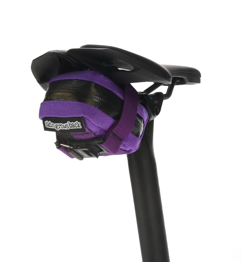 The Plan B Micron is a scaled down version of the Plan B. This discreet unit mounts under the saddle and around the rails using a 25mm strap with a clever magnetic hook to secure it. The PU coated zip and 1000D nylon construction makes the Plan B Micron water resistant, the 70D Ripstop liner backs this up. There are 2 HD elastic loops inside for stowing a multi tool and a CO2 canister leaving just enough room for a spare road tube and tyre levers. The Plan B Micron carries bare minimum spares, you could probably squeeze your front door key in there too.