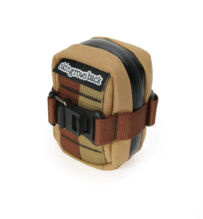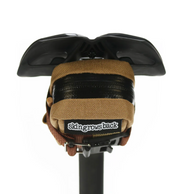 The Plan B Micron is a scaled down version of the Plan B. This discreet unit mounts under the saddle and around the rails using a 25mm strap with a clever magnetic hook to secure it. The PU coated zip and 1000D nylon construction makes the Plan B Micron water resistant, the 70D Ripstop liner backs this up. There are 2 HD elastic loops inside for stowing a multi tool and a CO2 canister leaving just enough room for a spare road tube and tyre levers. The Plan B Micron carries bare minimum spares, you could probably squeeze your front door key in there too.