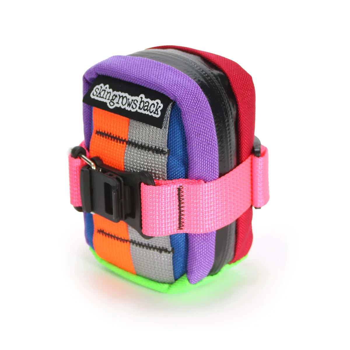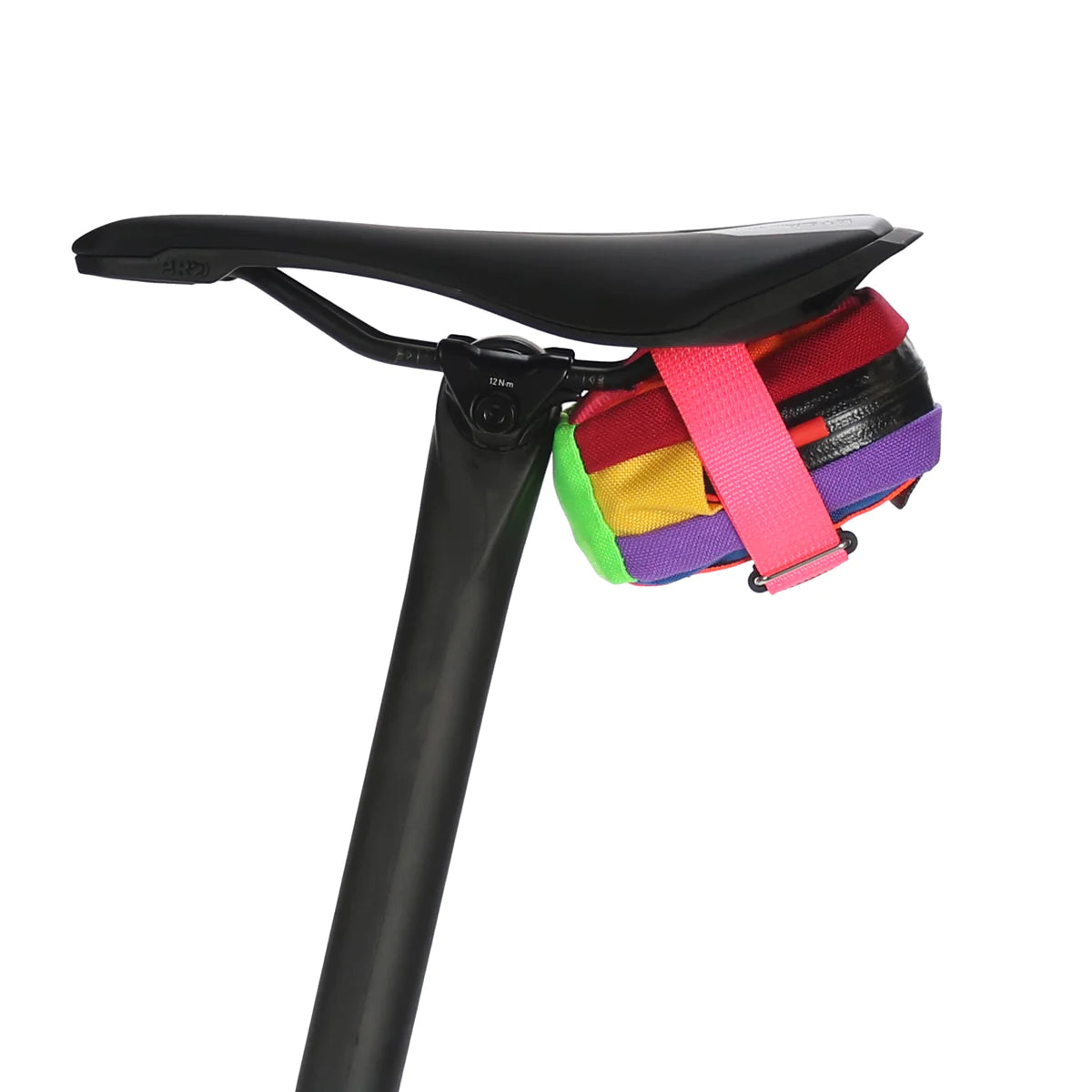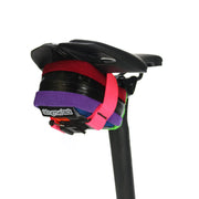 The Plan B Micron is a scaled down version of the Plan B. This discreet unit mounts under the saddle and around the rails using a 25mm strap with a clever magnetic hook to secure it. The PU coated zip and 1000D nylon construction makes the Plan B Micron water resistant, the 70D Ripstop liner backs this up. There are 2 HD elastic loops inside for stowing a multi tool and a CO2 canister leaving just enough room for a spare road tube and tyre levers. The Plan B Micron carries bare minimum spares, you could probably squeeze your front door key in there too.