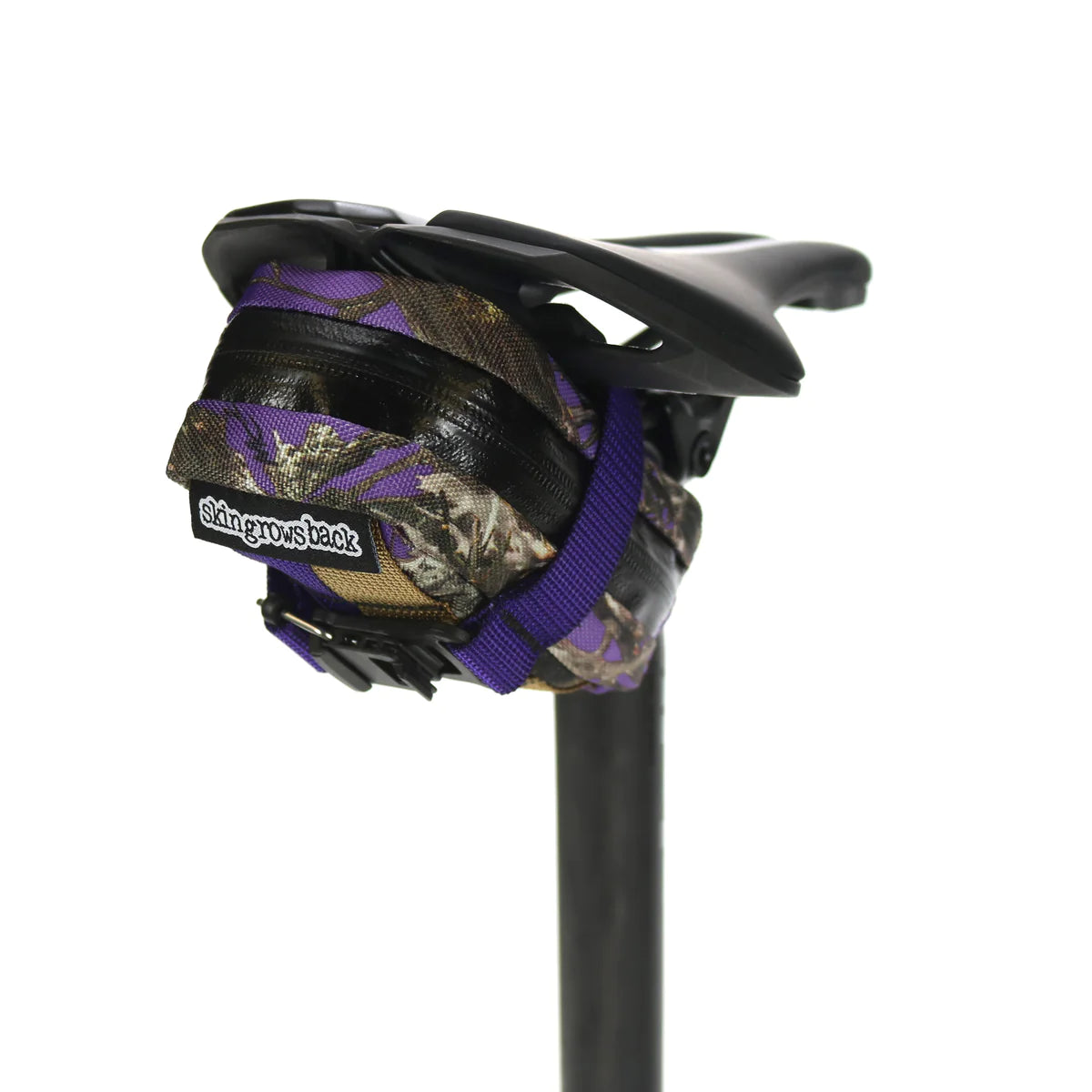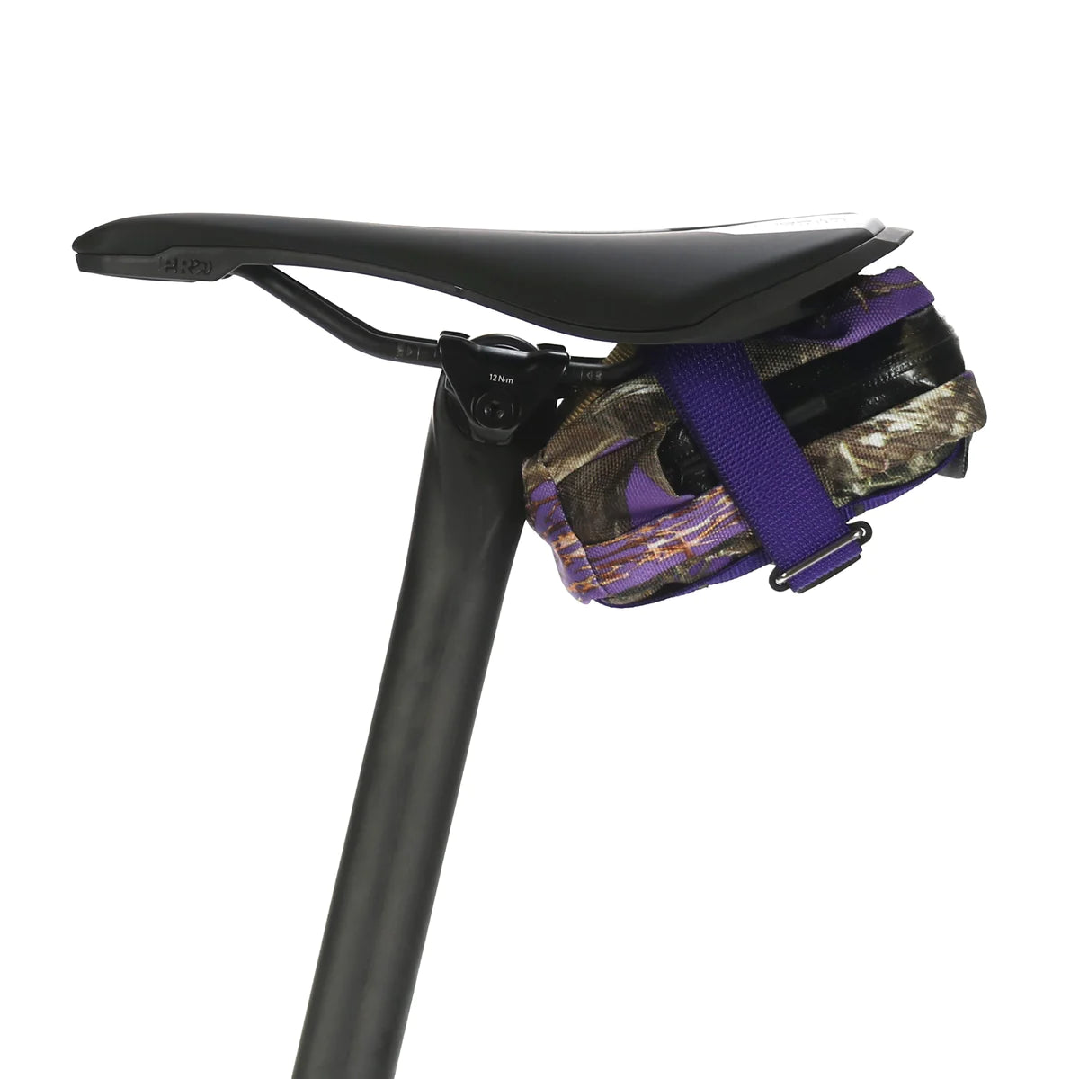 The Plan B Micron is a scaled down version of the Plan B. This discreet unit mounts under the saddle and around the rails using a 25mm strap with a clever magnetic hook to secure it. The PU coated zip and 1000D nylon construction makes the Plan B Micron water resistant, the 70D Ripstop liner backs this up. There are 2 HD elastic loops inside for stowing a multi tool and a CO2 canister leaving just enough room for a spare road tube and tyre levers. The Plan B Micron carries bare minimum spares, you could probably squeeze your front door key in there too.
